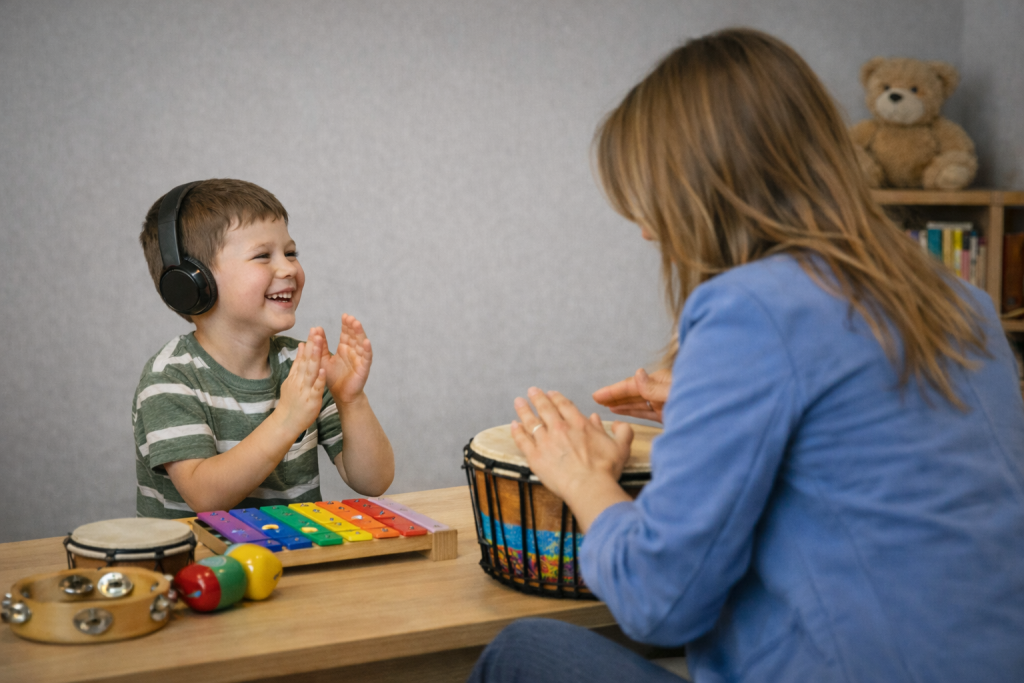 ბუნებაში ყველაფერი რიტმთანაა დაკავშირებული: გულისცემა, ნაბიჯები, სუნთქვა, დღე და ღამე, საათის ისრების მოძრაობა და ასე შემდეგ… მუსიკა და რიტმი ძლიერ ზეგავლენას ახდენს ადამიანის ემოციურ მდგომარეობაზე, ასევე შემოქმედებით და ლოგიკურ აზროვნებაზე, რაც იმას ნიშნავს, რომ თერაპიის პროცესში ტვინის ორივე ნახევარსფერო გააქტიურებულია და მიმდინარეობს მათი ერთდროულად დატვირთვა. აღსანიშნავია, რომ რიტმის აღქმაში ადამიანს ეხმარება მუსიკა. მუსიკალური აზროვნება კი რიტმის გარეშე წარმოუდგენელია, რადგან სწორედ რიტმს შემოაქვს მუსიკაში წესრიგი, ბალანსი.
